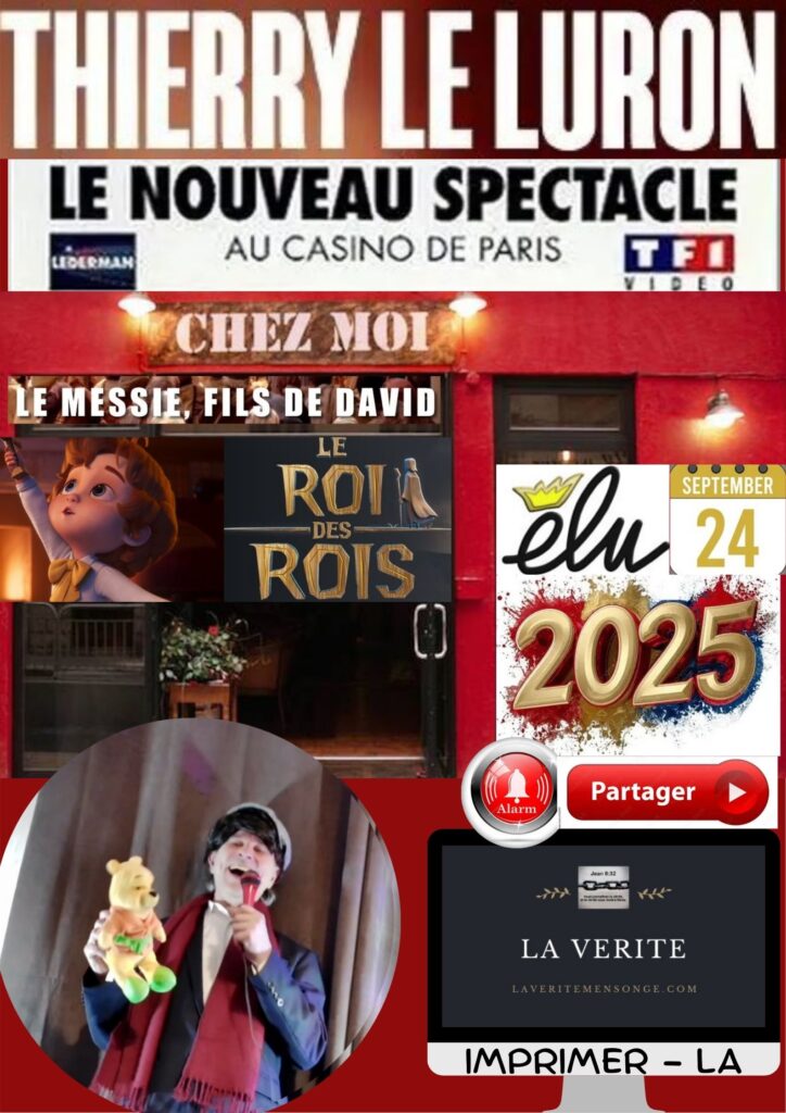 EN EFFET, A PARTIR DE FIN 2025, JUSQU’AU 10 01 2026, JE VAIS REALISER, ENCORE 3 AUTRES SPECTACLES EN L’ESPACE DE QUELQUES JOURS, QUI VONT TRANSMETTRE DES MESSAGES DE DIEU, PAR DES ARTISTES, QUE JE VAIS REPRODUIRE, POUR QUE VOUS PUISSIEZ COMPRENDRE, QUE DEPUIS LE DEPART VOS COMEDIENS ONT ANNONCE MON AVENEMENT, UN SOLEIL, UNE NOUVELLE TERRE, LA LUNE, UN NOUVEAU JOUR, QUI BRILLERA POUR ECLAIRER LES TENEBRES, CE TROISIEME TEMPLE SPIRITUEL, LA NOUVELLE JERUSALEM, POUR DEVOILER LE FAUX TEMPLE JUIF : L’ANTICHRIST L’ELU EMMANUEL MACRON, L’ESCLAVE DU GRAND ARCHITECTE SATAN, QUI EST CETTE MATRICE 666, CE LABORATOIRE IA APPELLE NEOM OU VOUS ETES PLONGES.